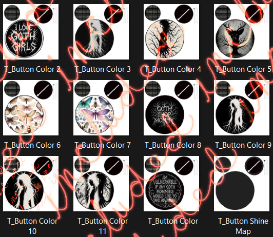 You'll get the Button Pin FBX; A Buttload of Textures & Shine Map (PNGs)